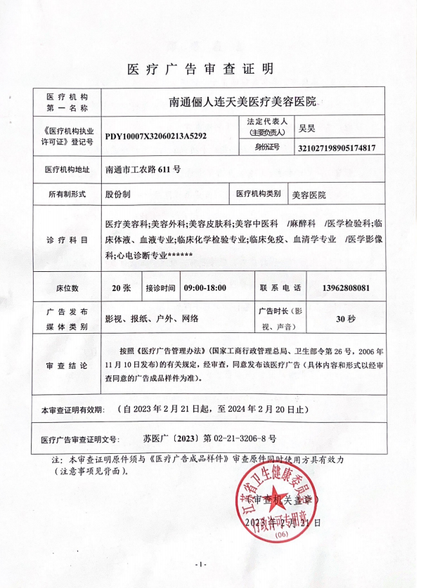 南通儷人連天美醫(yī)療美容醫(yī)院是與著名的醫(yī)療美容集團合作建立的醫(yī)院,醫(yī)院提供高品質(zhì)的醫(yī)療美容服務(wù)。2008年,南通儷人連天美醫(yī)療美容醫(yī)院落戶南通,成為由南通衛(wèi)生局審批的專業(yè)醫(yī)療美容醫(yī)院。南通儷人連天美醫(yī)療美容醫(yī)院,特別設(shè)有專業(yè)的整形美容科、皮膚美容科和微創(chuàng)美容科三大科室,致力于為廣大求美者提供全方位的醫(yī)療美容服務(wù)。南通儷人連天美醫(yī)療美容醫(yī)院為求美者建立個人終生美麗檔案,一對一進行細致服務(wù)。 11年來,南通儷人連天美醫(yī)療美容醫(yī)院,不斷引進先進設(shè)備,不斷完善醫(yī)美技術(shù),一批優(yōu)秀、專業(yè)而穩(wěn)定的醫(yī)生團隊,為無數(shù)求美者鑄就美麗夢想。